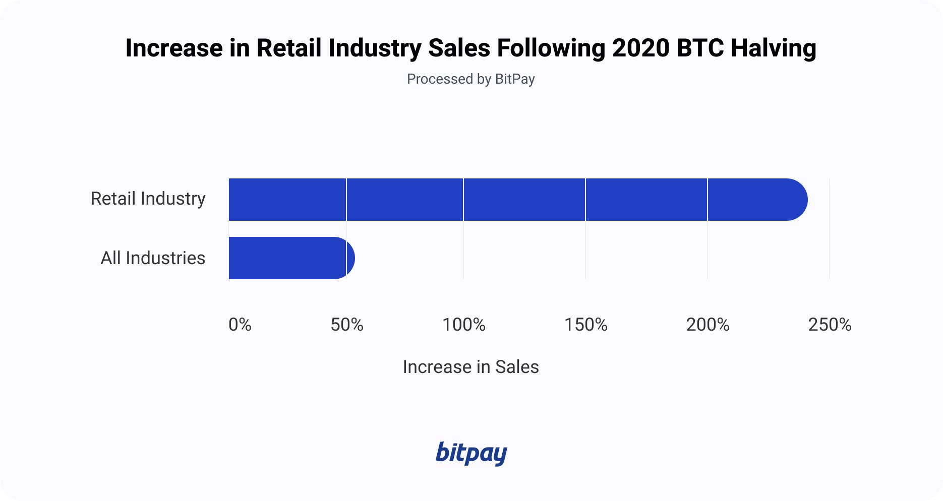 The takeaway for merchants is this: having the necessary infrastructure in place before the halving could increase sales by a significant degree. This one simple addition to a business’s operations – accepting crypto payments – can mean the difference between falling behind competitors or exceeding their performance.