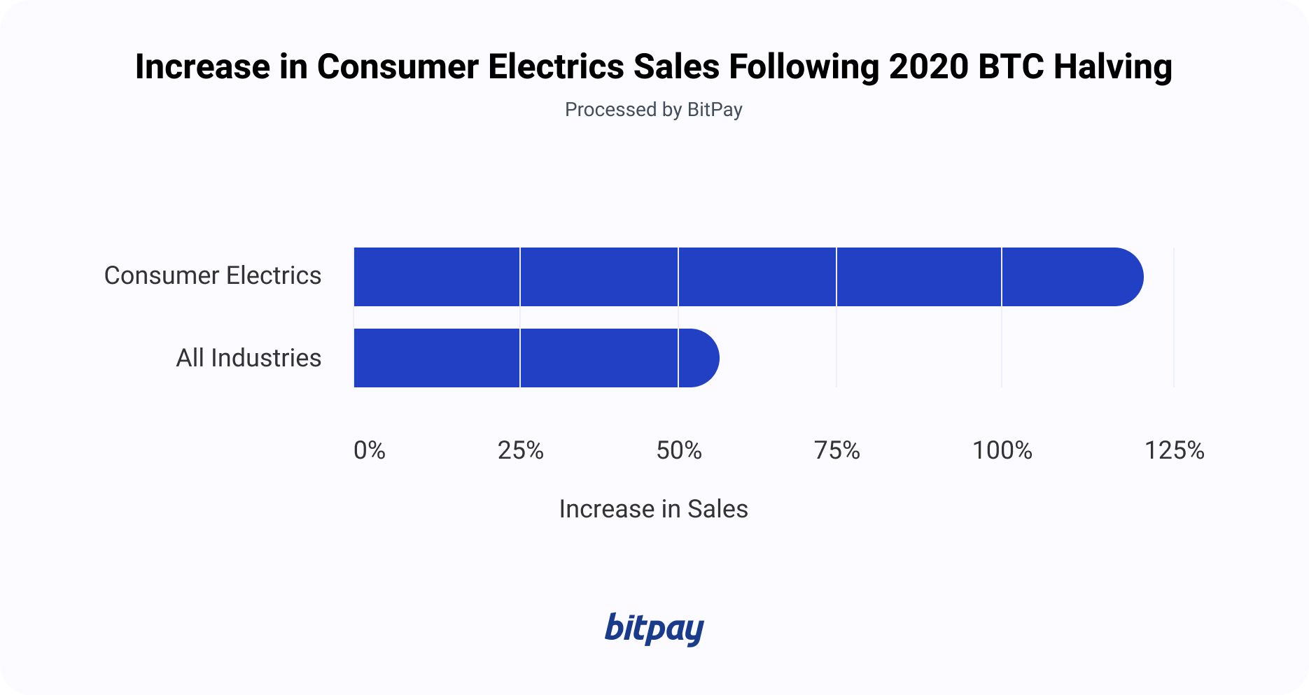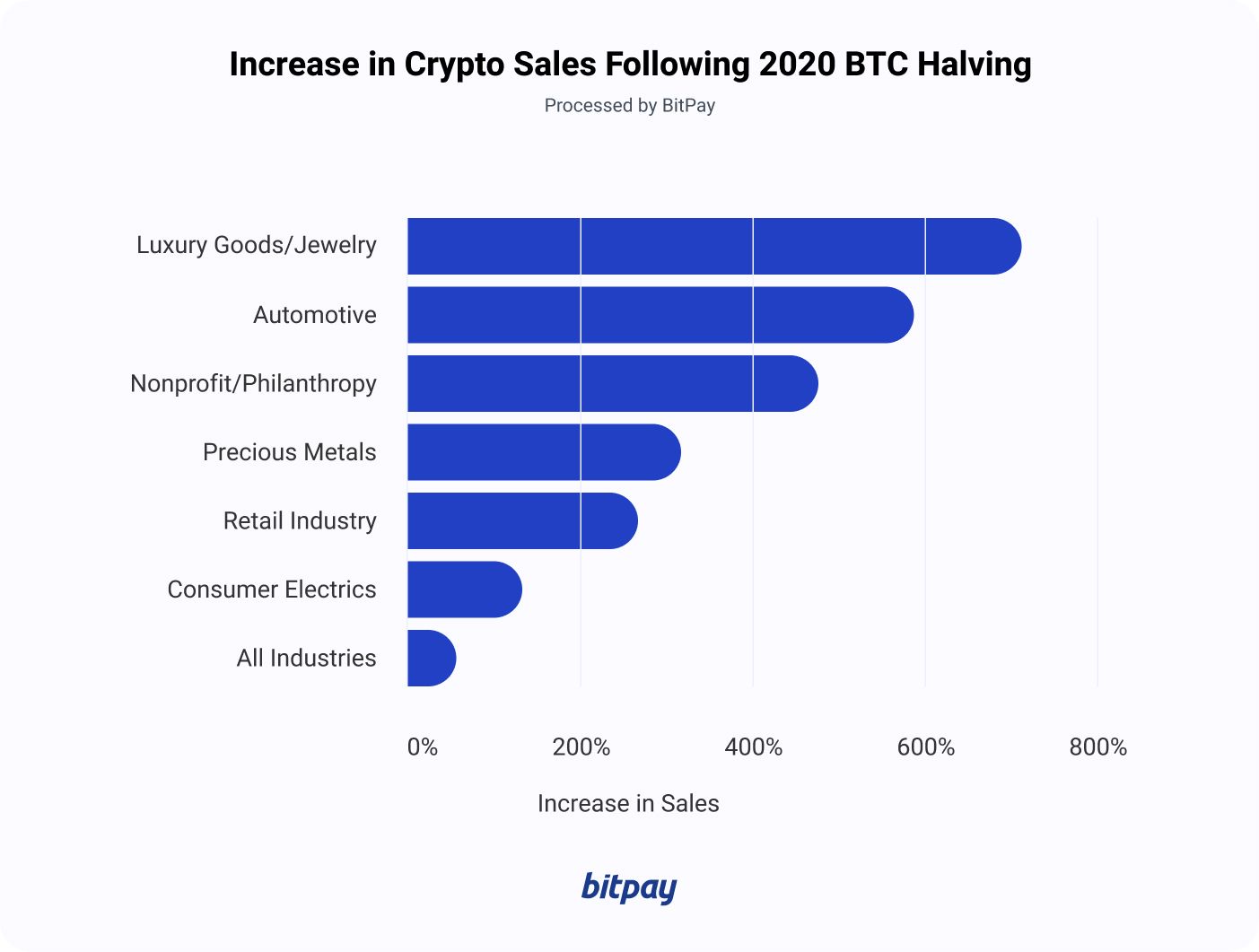 Internal BitPay sales data shows an increase in purchases made with cryptocurrency in the time following past halving events.